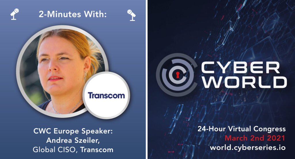 Join Andrea in the European segment of Cyber World Congress on 2nd March 2021 for the Case Study: ‘Work At Home, Our Journey to Zero Trust’ at 10:10 GMT! She’ll be joined by speakers like James Hamon (CISO, Financial Ombudsman Service), Bjørn R. Watne (SVP & CISO, Storebrand), Maciej Szot (Global Information Security Director, Eurofins) and Ardie Kleijn (CISO, Transavia) at the event, so be sure to register for FREE* with code TRANSCOM at https://world.cyberseries.io/register/